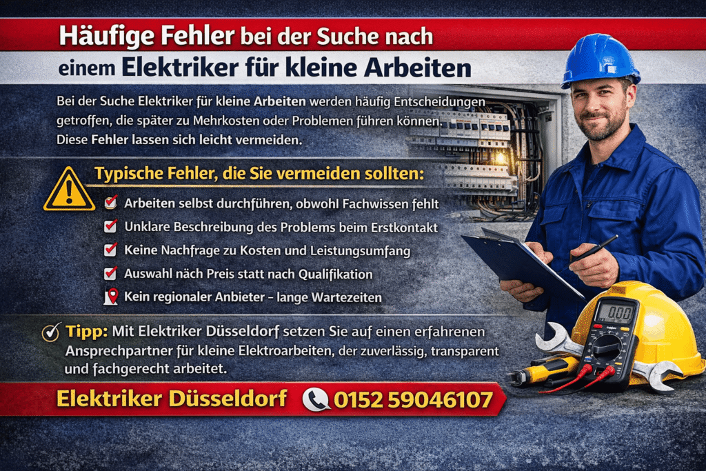 Bei der Suche Elektriker für kleine Arbeiten passieren oft vermeidbare Fehler, die zu Verzögerungen, höheren Kosten oder unzufriedenstellenden Ergebnissen führen können. Diese Stolperfallen lassen sich mit etwas Vorbereitung umgehen.